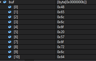 byte[] buf = System.Text.Encoding.UTF8.GetBytes("Hello World"); // 10바이트 문자열 Hello World