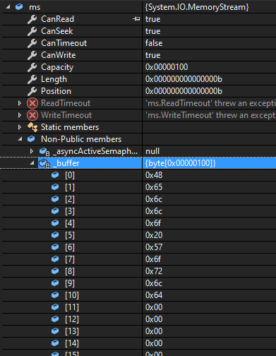 Console.WriteLine("MemoryStream");