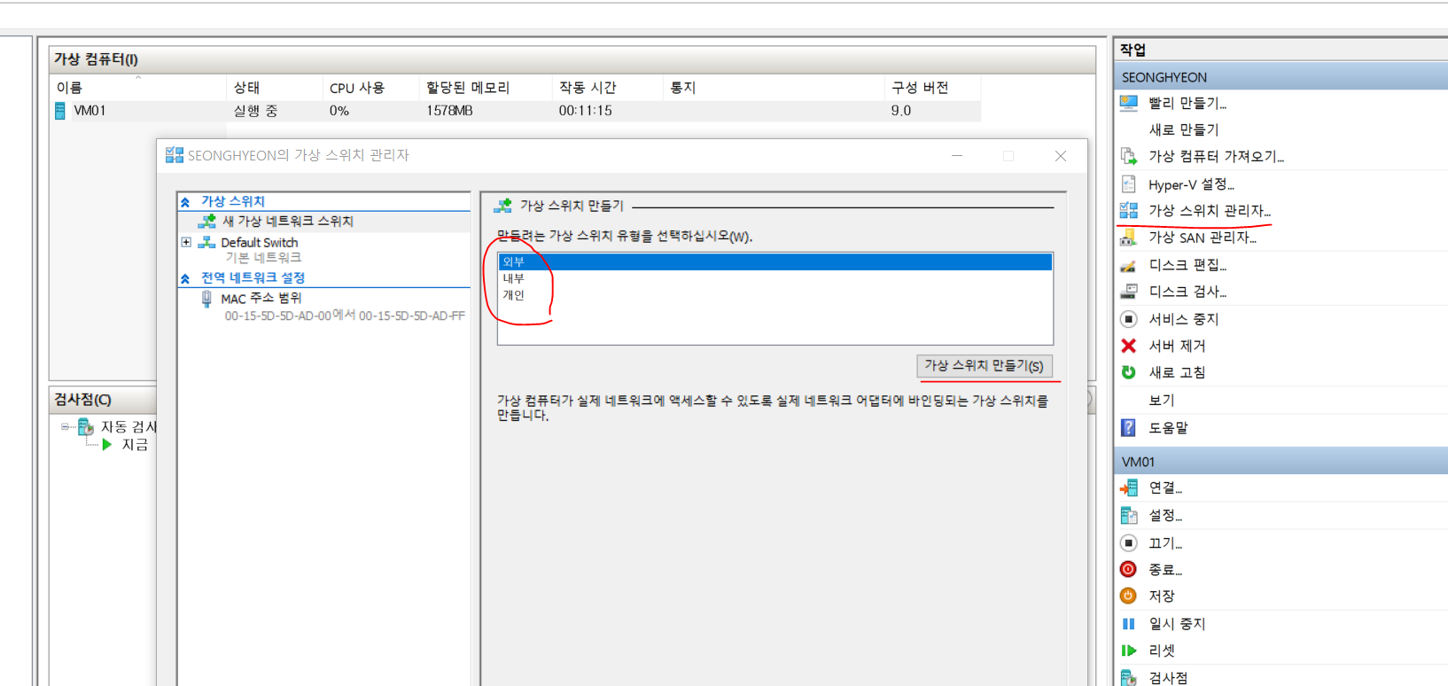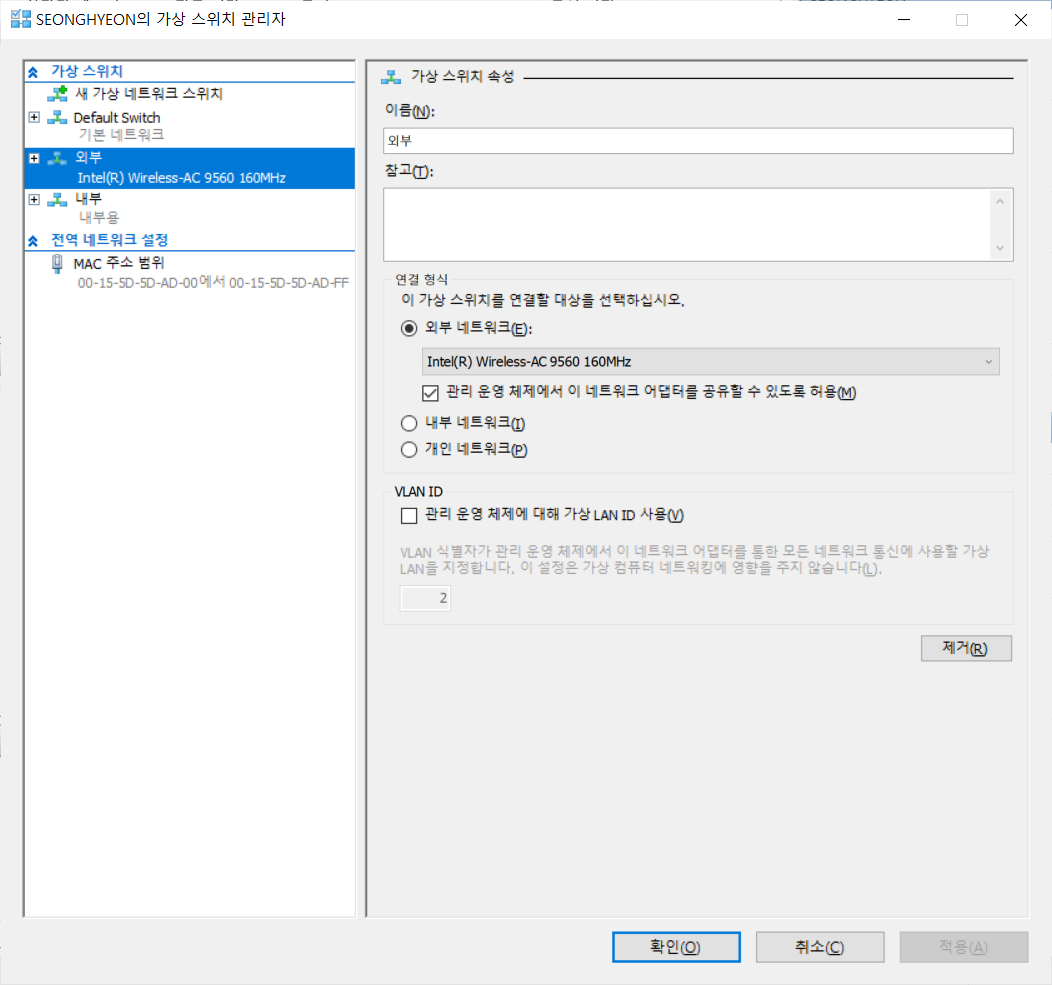 외부, 내부 가상 스위치 생성