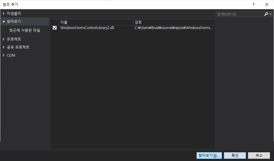 9. 참조 추가. 찾아보기 버튼 클릭 후 위에서 빌드한 버전에 따라 해당 DLL 추가