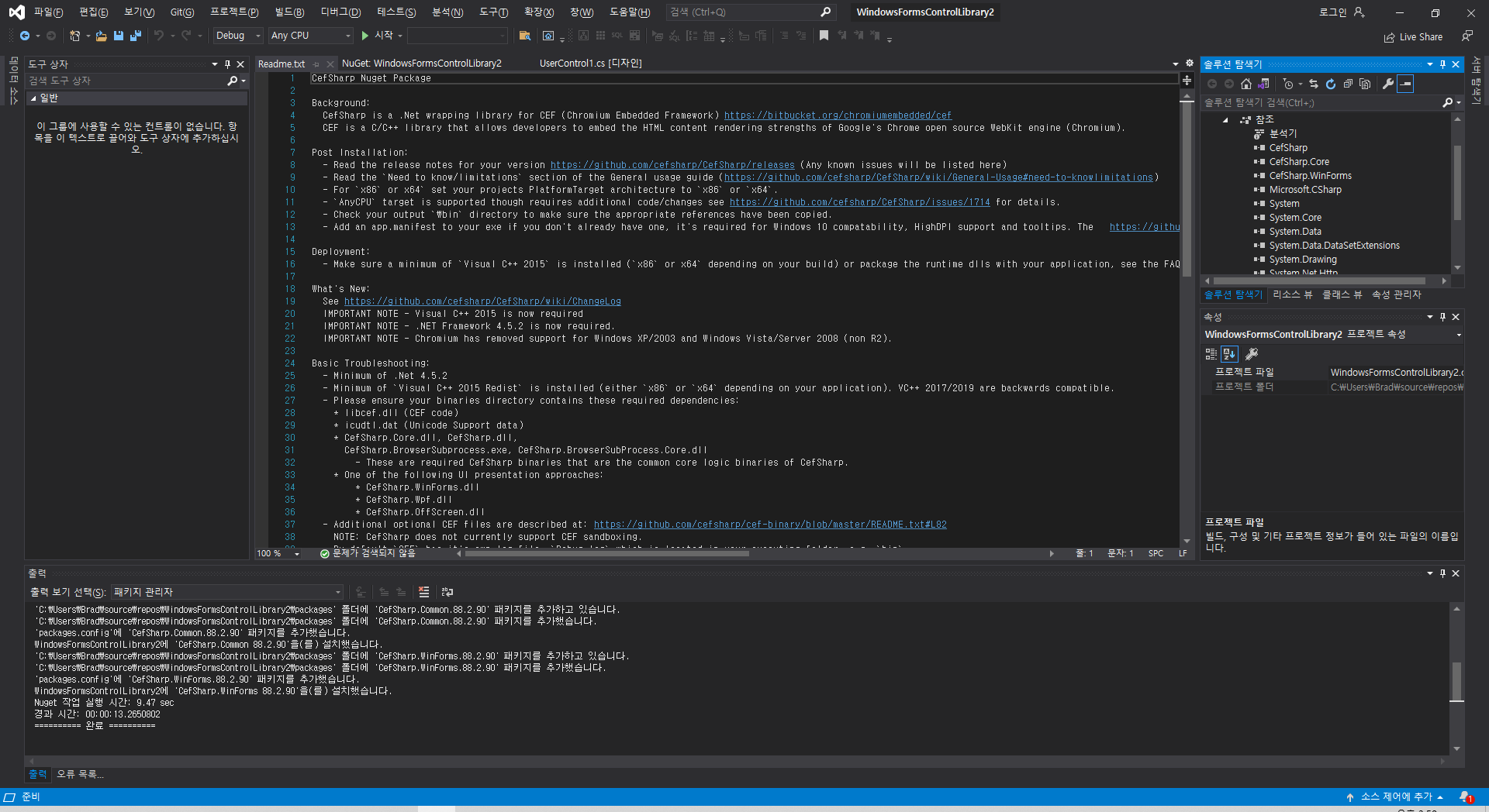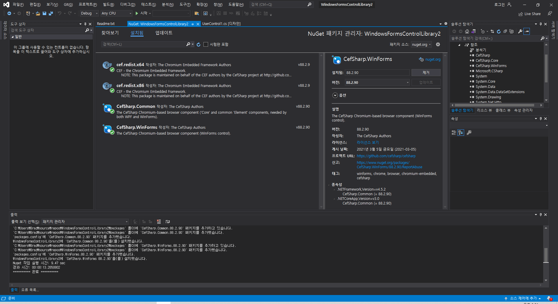 3. Nuget Package - CefSharp.winform 설치