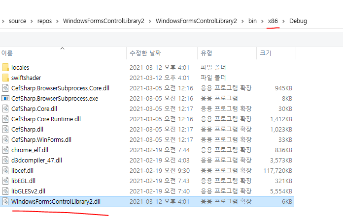 * 빌드 시 오류가 날 수 있는데 컨트롤 라이브러리 디버그에 있는 Cef 관련 dll을 mfc 프로젝트 exe가 있는 경로에 모두 붙여넣기 하시기 바랍니다.