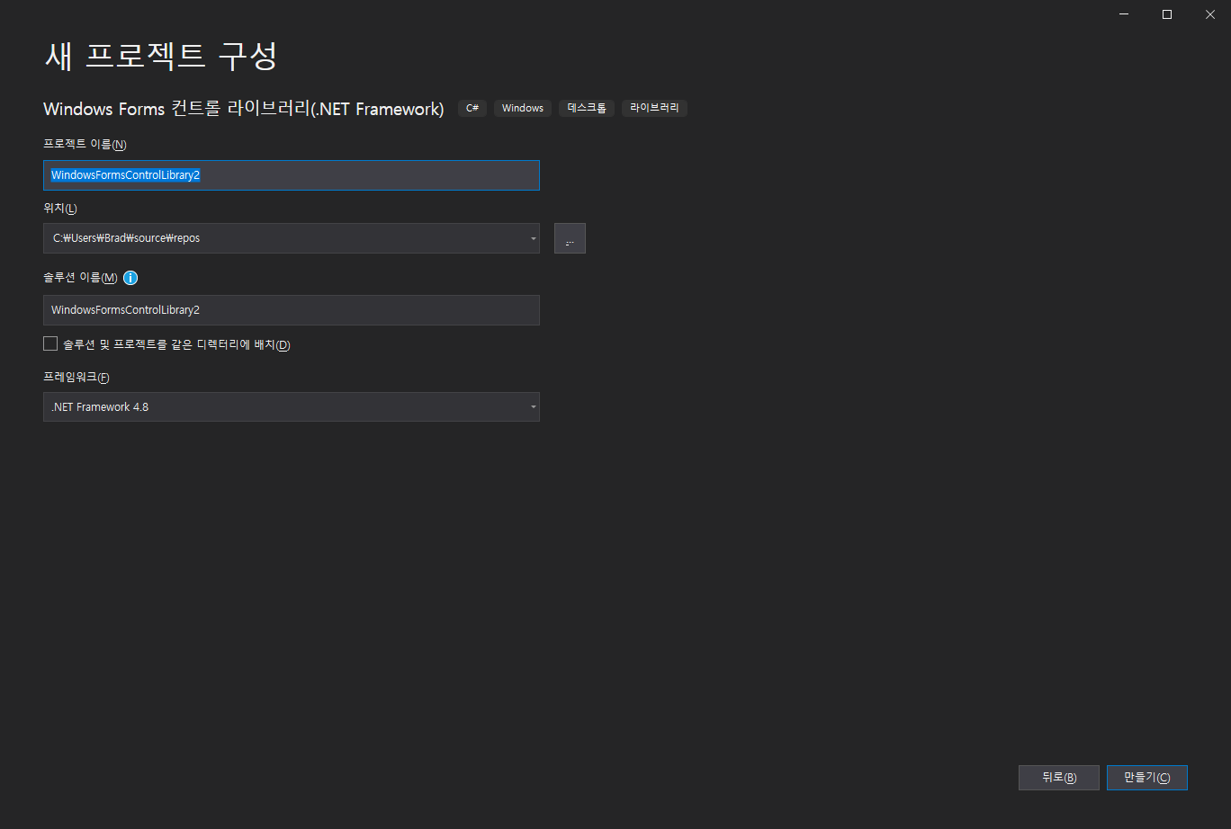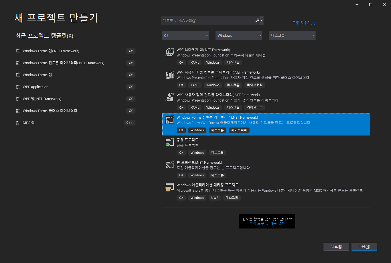 1. C# Windows Forms 컨트롤 라이브러리 프로젝트 생성
