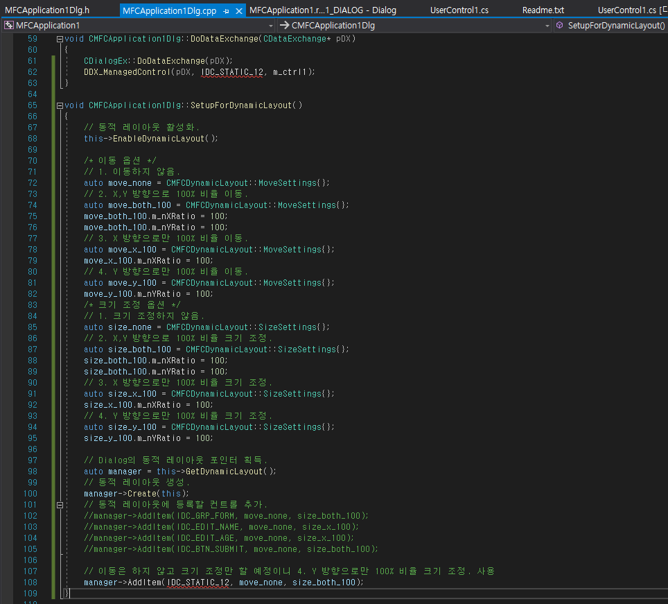 참고 링크 : [MFC] Dynamic Layout 적용하여 컨트롤 Resizing하기(예제 포함) (tistory.com)