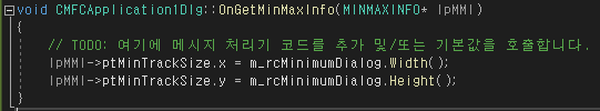 메시지에 getmin 검색하면 WM_GETMINMAXINFO