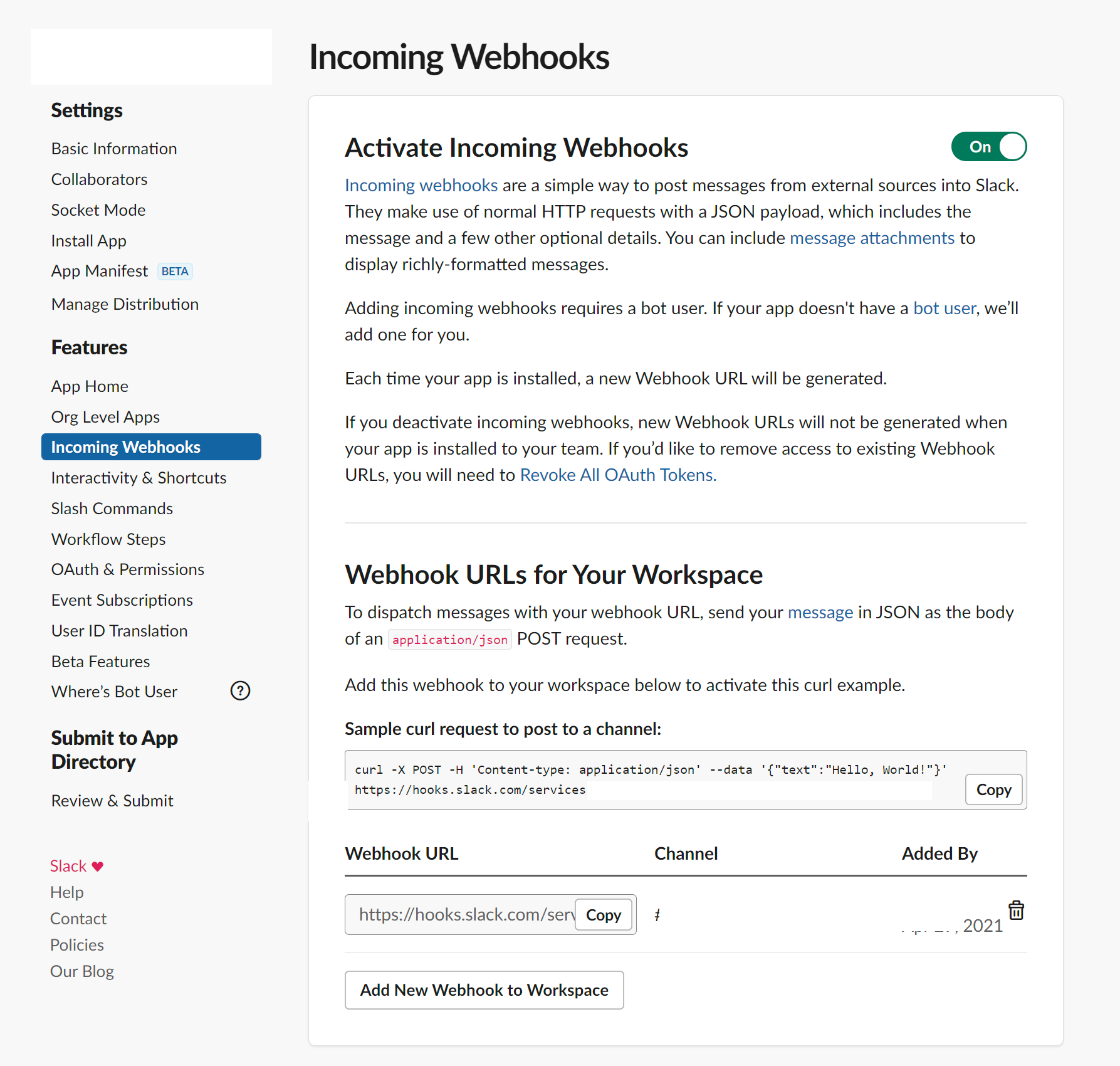 3. WebHook Url 만들기