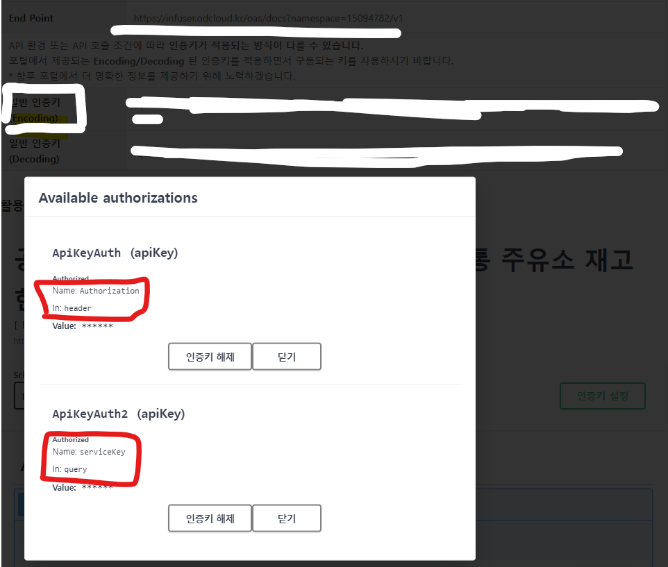 Header와 Query에서 인증을 두번 해야한다.