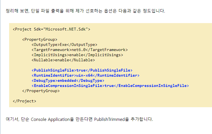.NET Framework: 2066. C# - PublishSingleFile과 관련된 옵션