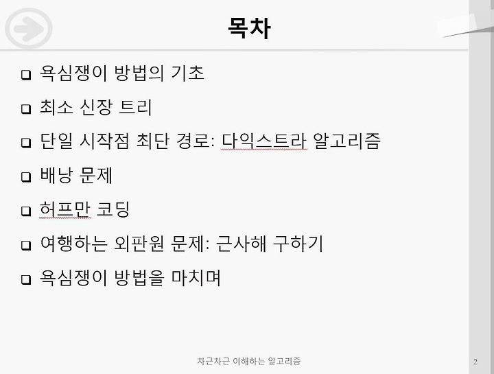 대학교/2.알고리즘 [차근차근 이해하는 알고리즘]욕심쟁이 방법(Greed) Jcoder 2018. 5. 14. 21:14 차근차근 이해하는 알고리즘 - 이형원2장chap2.pptx 저작자표시 (새창열림)